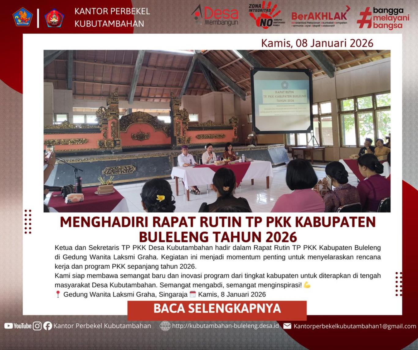- SELARASKAN PROGRAM KERJA 2026, TP PKK DESA KUBUTAMBAHAN HADIRI RAPAT RUTIN KABUPATEN BULELENG